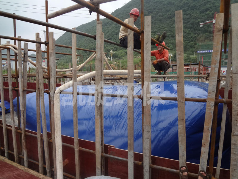用安裝好的側膜和暫時支架做成一個圍堰(也可以是沙袋)作為受力的一層,再將帆布鋪在圍起來的圍堰里作為密封的一層,再往水袋里邊灌水,歸于均不荷載。特點是簡單、實用、價格低廉,但是預壓的重量難以達到,不安全。會造成翼板的整體移動,甚至會變形等等,灌上水之后,搭建的支架下邊會成為水簾洞。應用:螺旋鋼管貝雷片支持體系,排水條件好的根底。